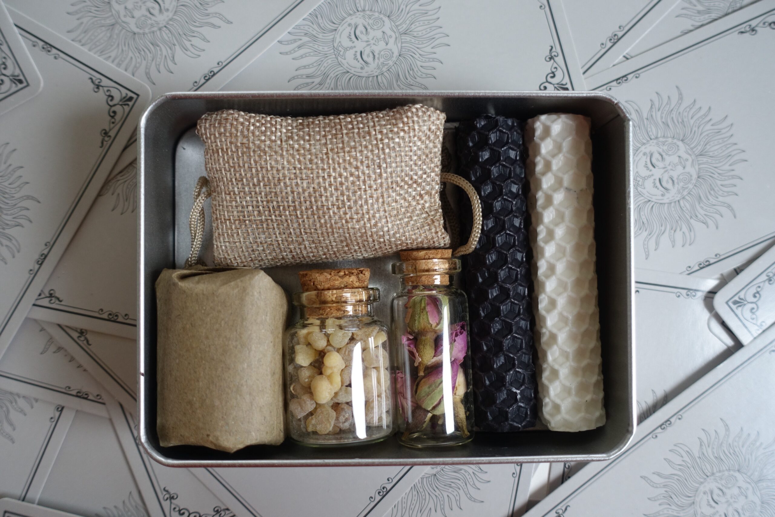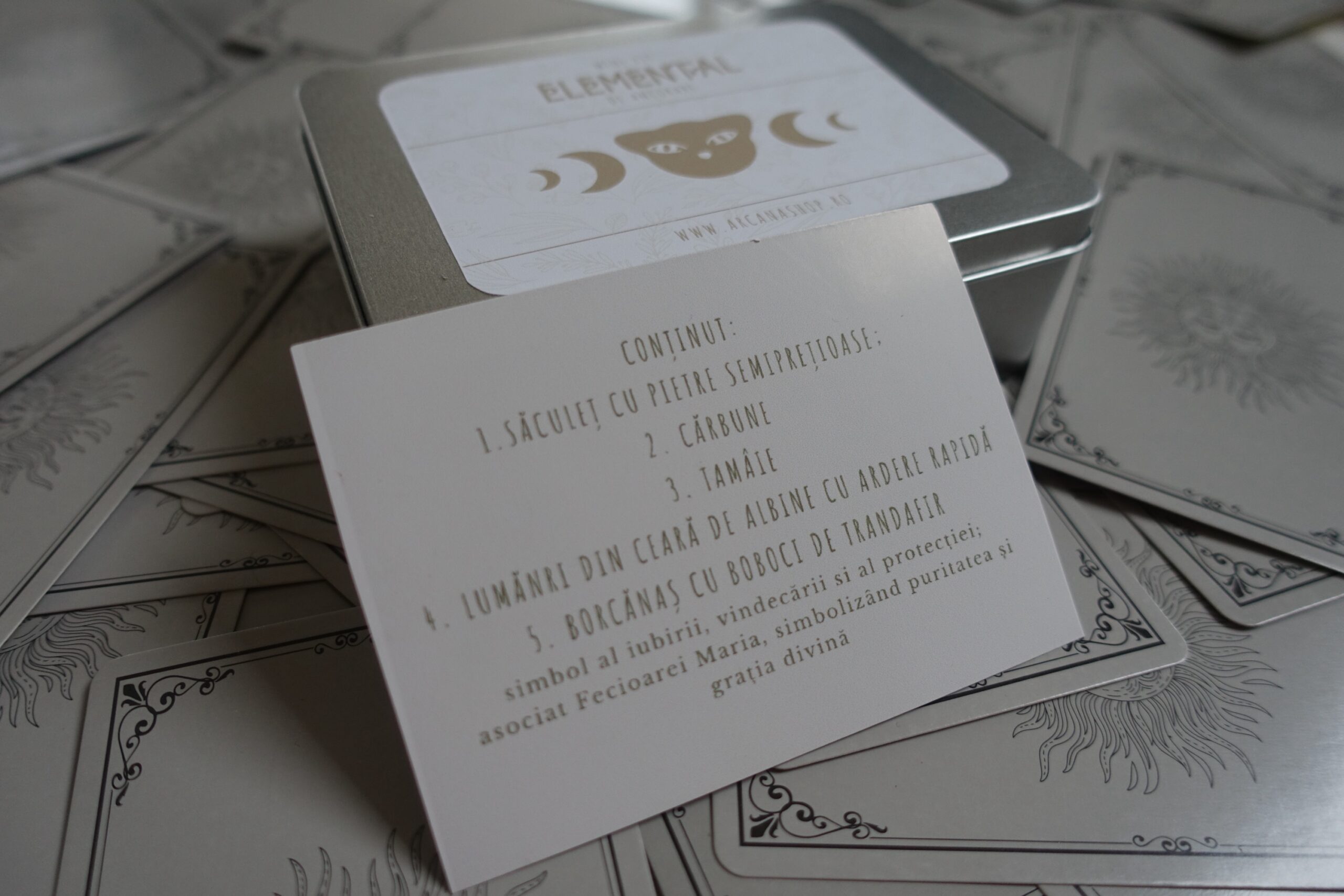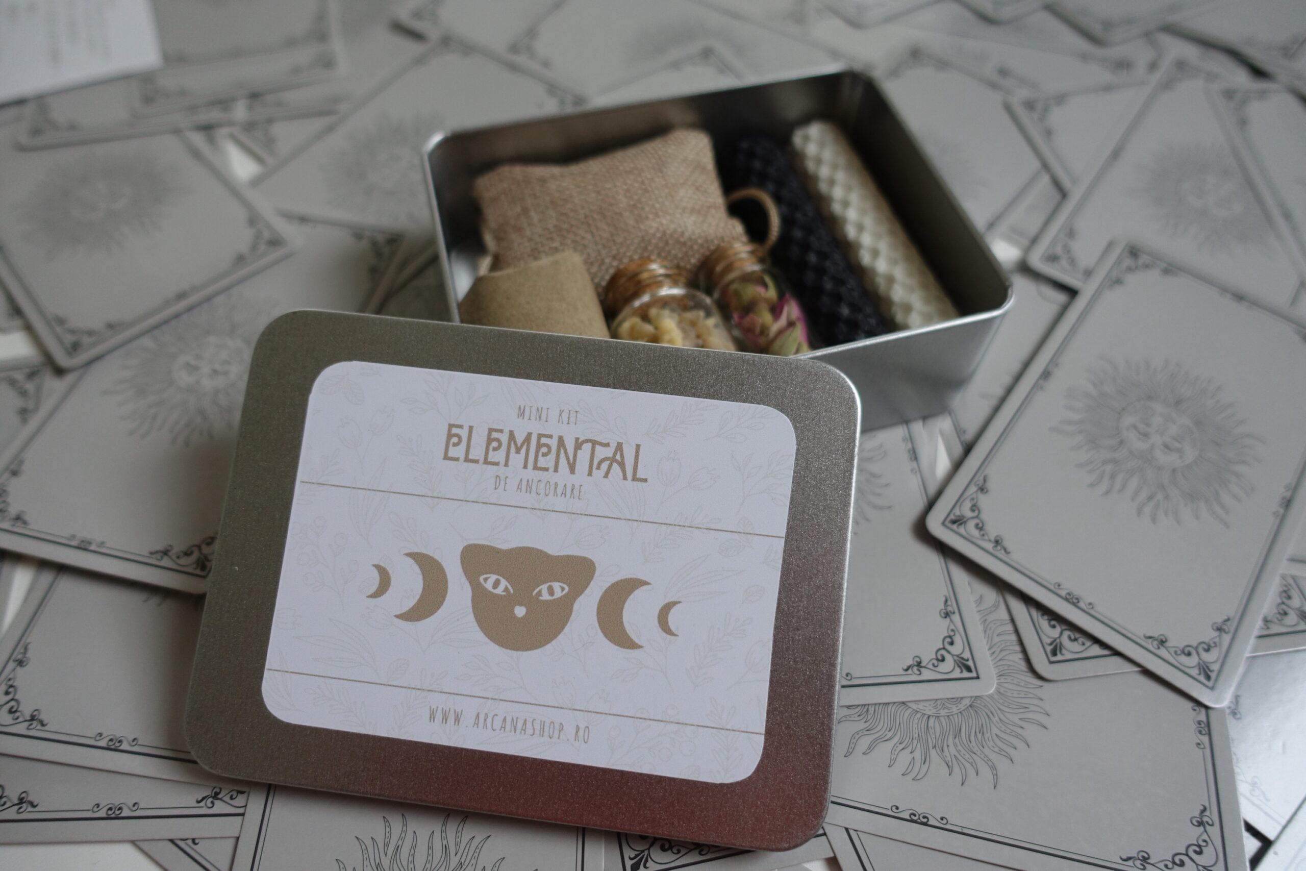 Kitul Elemental este mai mult decât un set de obiecte; este un instrument de lucru spiritual, conceput pentru a-ți susține ritualurile de curățare, meditație sau setare de intenții. Împachetat cu grijă într-o cutie metalică minimalistă, acest kit reunește elemente sacre menite să aducă claritate și protecție spațiului tău.